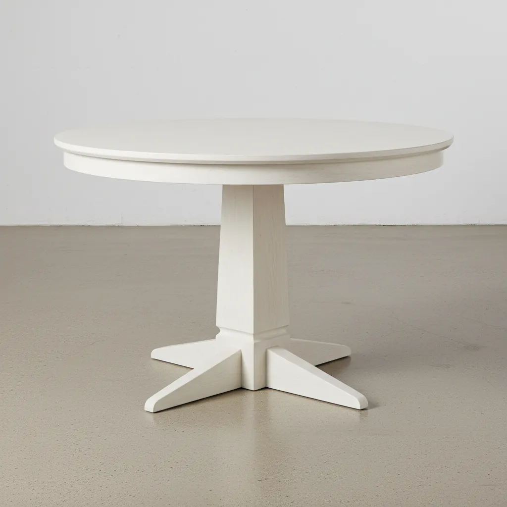 This elegant round dining table features a classic pedestal base, offering timeless style and versatile functionality for any gathering.